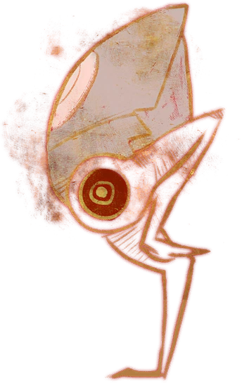 Cluckers are white robots that have two short birdlike legs, and are about the size of a large chicken. They have red circles where their legs attach to their bodies, which are shaped like water droplets that split vertically to reveal a round white mortar which can be flung at their opponents.